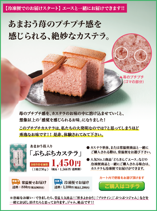 「カチッ!」とハマったところを見つけ出した、「苺のぷちぷちカステラ」。絶妙です。